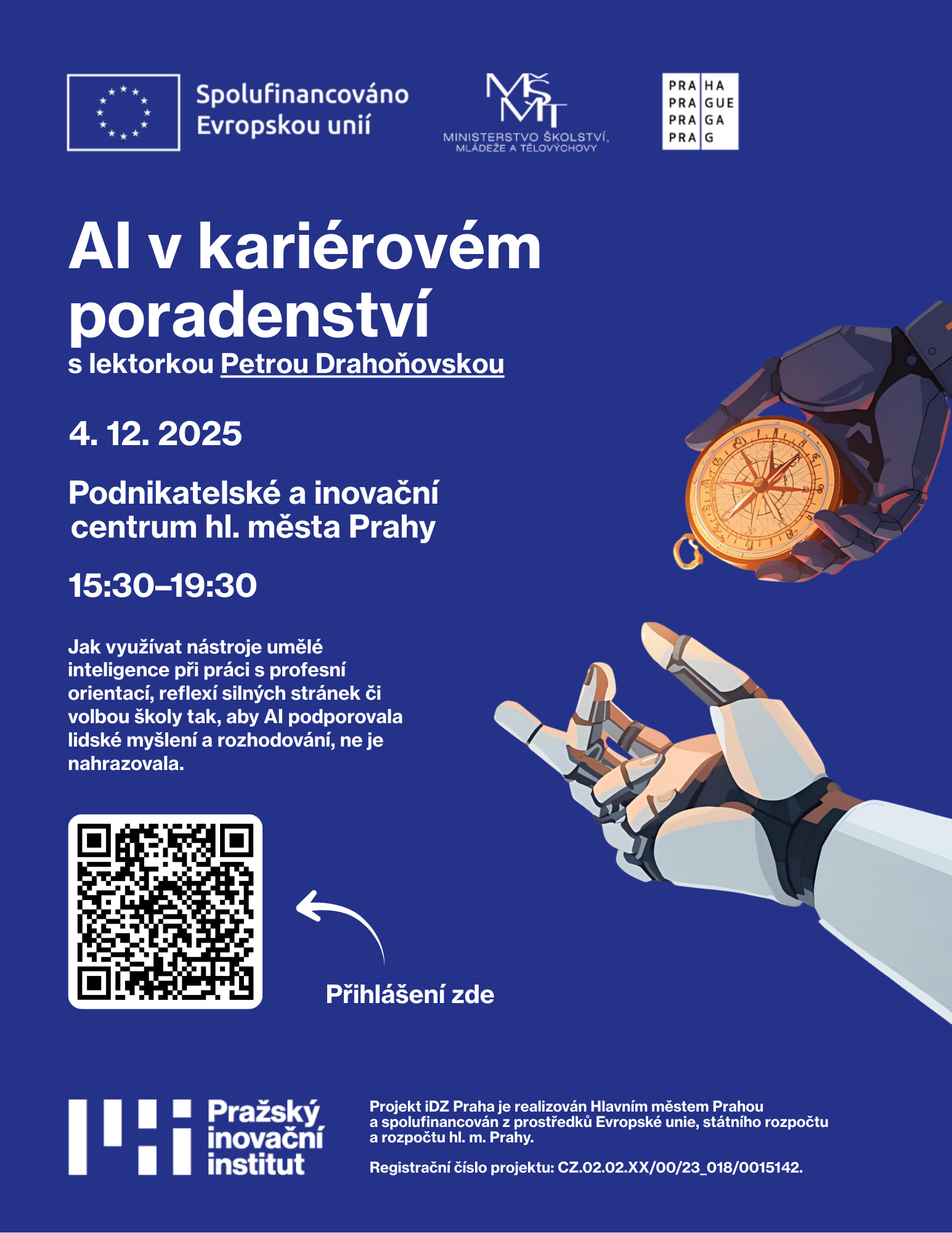Účastníci si vyzkoušejí reálné případovky, jak využívat nástroje umělé inteligence při práci s profesní orientací, reflexí silných stránek či volbou školy – tak, aby AI podporovala lidské myšlení a rozhodování, ne je nahrazovala.